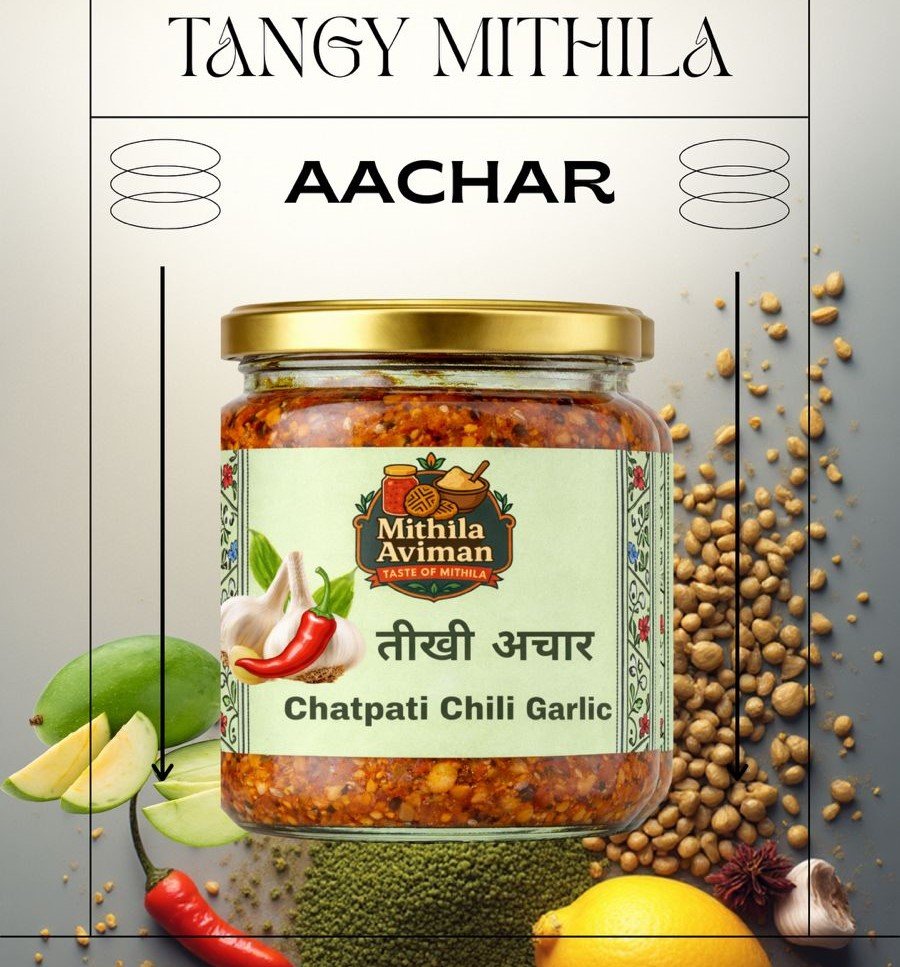 Mithila Aviman proudly presents Chatpati Chili Garlic (तीखी अचार)—a fiery celebration of Mithila’s rich culinary heritage. Crafted with deep respect for tradition and ancestral wisdom, this homemade spicy pickle brings the true essence of village-style Mithila cuisine to your dining table.